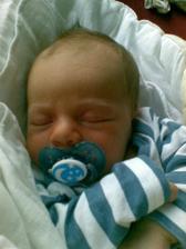 Jmenuji se Tomášek, narodil jsem se 25.4.2009 ve 02.45h, vážil 3910g a měřil 53cm.