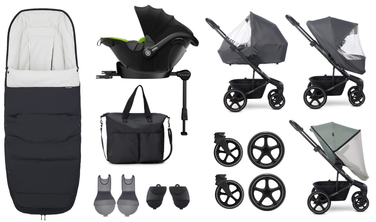 Easywalker Harvey5 Premium Air je možné zakoupit ve výhodném XXL setu, který obsahuje dvojkombinaci kočárku s příslušenstvím. Na výběr je i varianta s autosedačkou – tzv. vajíčkem a bází.