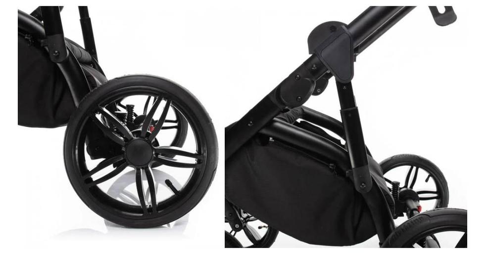 kolečka nafukovací (otočná s možností fixace) • vhodný pro vysoké rodiče • téměř úplný rovný leh (165°) • otočná sedačka • velký úložný prostor • skládací vanička • možnost připojení autosedačky • zadní kolečka ⌀30 cm • hmotnost kočárku 11 kg • nosnost sedačky 15 kg • šířka kočárku 60 cm