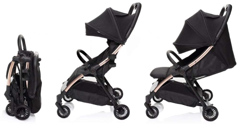 kolečka pěnová (otočná s možností fixace) • vhodný pro nízké rodiče • téměř úplný rovný leh (165°) • velmi lehký • velmi skladný • velký úložný prostor • složení jednou rukou • zadní kolečka ⌀20 cm • hmotnost kočárku 5.3 kg • nosnost sedačky 15 kg • šířka kočárku 46 cm