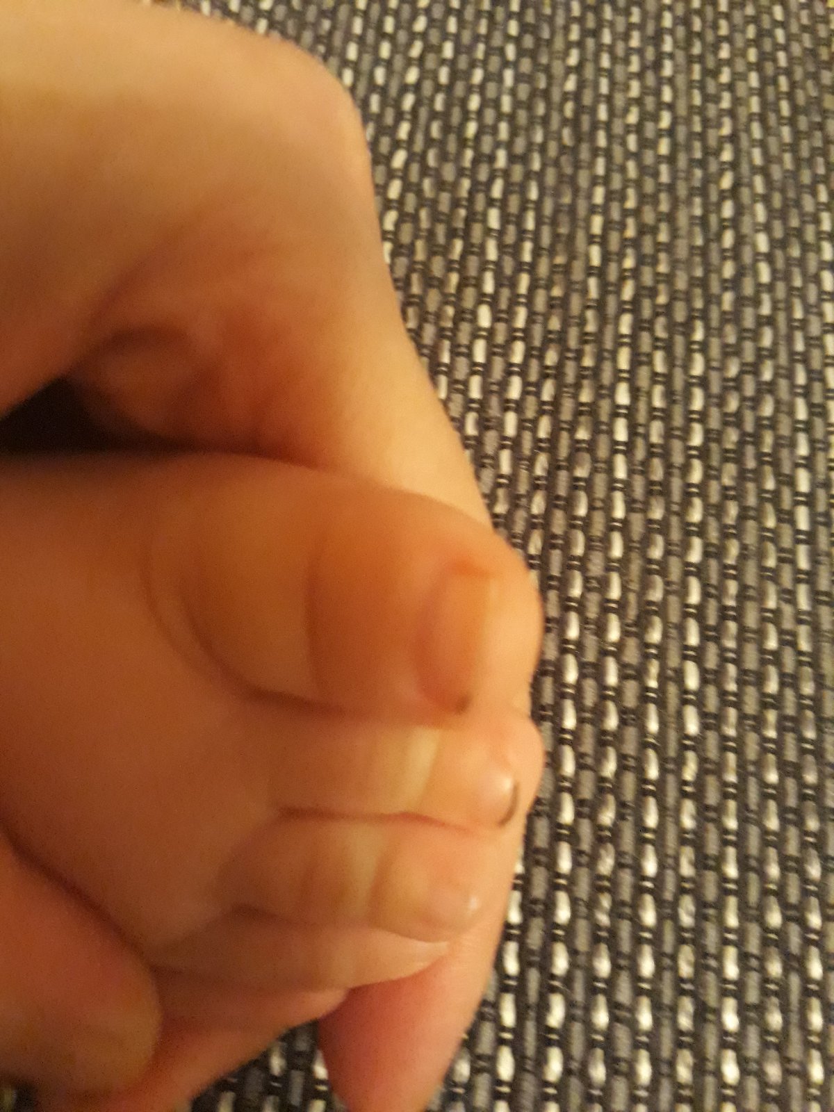 většinou se jedná o malou traumatizaci - poškození - nehtíku, třeba při poloze na bříšku, nebo od švu dupaček či ponožek. Samo se to časem zhojí.