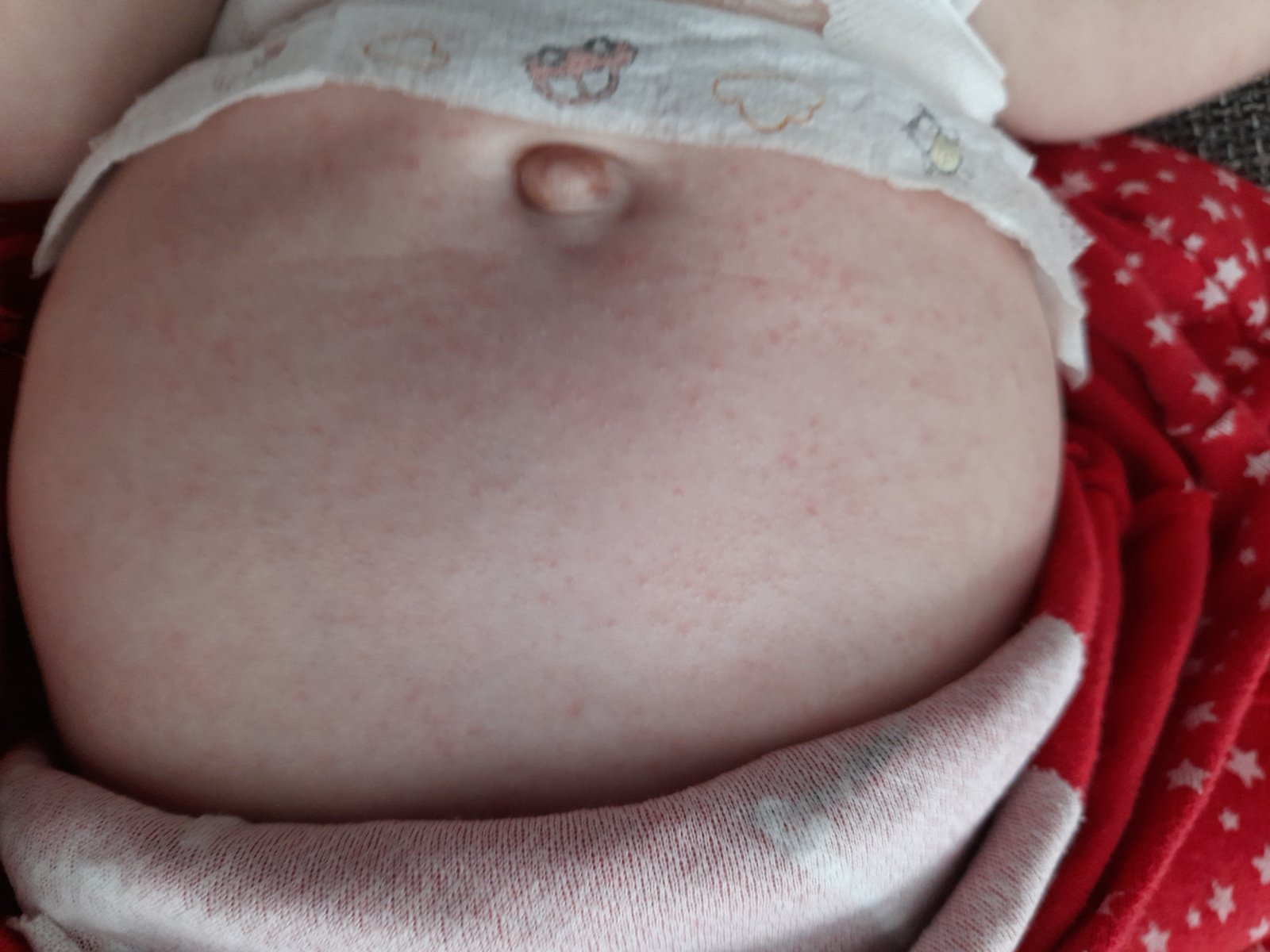 malému (4 m.) se udělala vyrážka na prsou, bříšku a na čele. Byli jsme na očkování, poté měl teplotu 38 a druhý den vyskákala tato vyrážka. Myslela jsem, že jsou to jen potničky z té teploty. Ale je to přes týden a vyrážka nemizí.