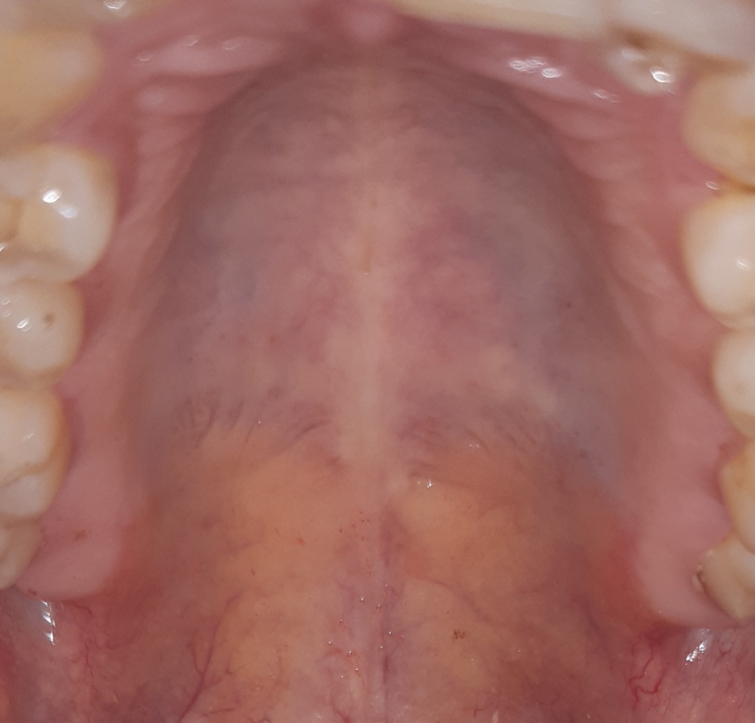 na fotografii vpravo, na tvrdém patře jsou viditelné jakoby 3 bledé "bouličky" neboli "výrůstky, výstupky". Všimla jsem si toho náhodou jazykem, jsou tvrdé, přijde mi to jako kost toho patra, ale na druhé straně nic takového nemám.