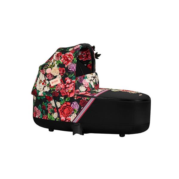 Na e-Priam pasuje také novější, světlejší hluboká korba Cybex Priam Lux Carry Cot SPRING BLOSSEM Light hluboká korba 2022. Ta má navíc výškové adaptéry, díky kterým je položena výše na konstrukci.