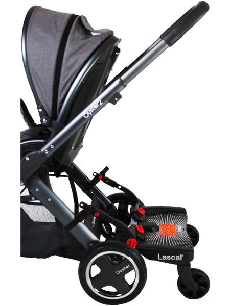 doporučuji Zopa Segboard a Lascal Buggy Board, které mají nastavitelná "ramena" do různých úhlů a délky, jdou tak připojit k většině kočárků na trhu. K oboum můžeš dokoupit i sedátko (u Lascal jen u většího modelu maxi).