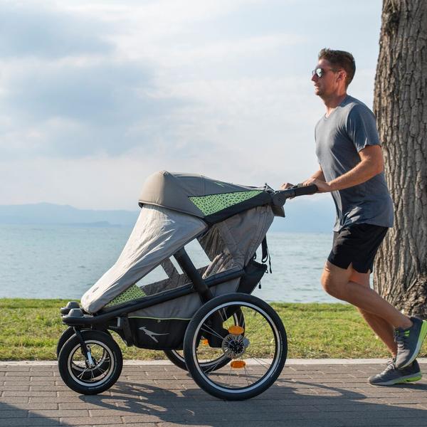 Co se cyklovozíků týče, tak ty jsou na tom podobně. Akorát jsou ještě těžší než kočárek. Takový TFK Joggster Velo 2 váží až 17,5 kg. Jinak je jejich funkcionalita při běhu a bruslích stejná.