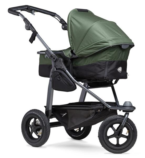Do terénu jsou obecně nejlepší trojkolky, když k tomu přidáme požadavek na obousměrné sezení, tak se nám seznam o dost zúžil. Mně se zdá TFK Mono jako dobrá volba. Je pravda, že váží dost (15,5 kg), ale bohužel kočárky do terénu nebývají lehké. Ačkoliv působí jako tank, tak klame "tělem", jízda s ním je lehká, až jsem byla sama překvapená. Těžší hmotnost většinou zaregistruješ až u skládání kočárku do auta nebo při tlačení do kopce. I když je to trojkolka a nemá velký rozchod kol, tak je opravdu stabilní a do obtížnějšího terénu je přímo dělaný. Nespornou výhodu vidím v jeho korbě Mono Combi, která se dá předělat na obousměrný sporťák a menší dítě tak můžeš vozit čelem k sobě.