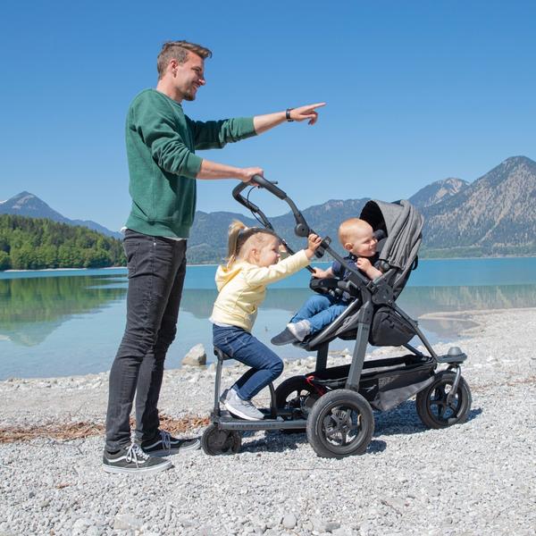 jednoznačně doporučuji kočárek TFK Mono, který má jednu z největší nosností mezi kočárky, a to 34 kg. Kromě toho je velmi dobře odpružený a je to zkrátka takový tank co projede vše. Nevýhodou je jeho vyšší hmotnost - 15,5 kg, ale to je daň za jeho jízdní vlastnosti a stabilitu. Můžeš si u něj vybrat, jestli chceš bezúdržbová gumová kola se vzduchovými komorami nebo klasická nafukovací, ale já bych do terénu vzala určitě nafukovací. I když působí robustně, tak skládání je jednoduché a lze ho složit do kompaktního rozměru. Najdeš u něj dále ruční brzdu, polohování zad i nohou, až do úplného lehu, prodlužovací stříšku a praktické boční kapsy se zipem, kam můžeš uložit drobnost. Prostorově patří také k těm větším. Za mě je to jasný favorit a patří mezi nejlepší terénní kočárky na trhu! 🙂