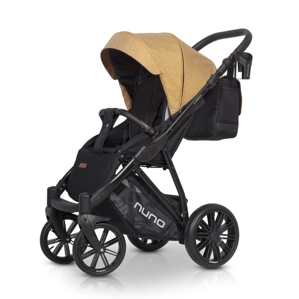 Podobným modelem je kočárek Riko Nuno. Je to cenově dostupný sportovní kočárek robustnějších rozměrů vhodný do téměř každého terénu a do každého ročního období. Hliníková konstrukce je proto vybavena většími gumovými koly a také regulovatelným odpružením. Neotočnou sedací část kočárku můžeš sklopit až do lehu v zádové i nožičkové části. Opěrka zad se dokonce dá díky zjednodušenému pásovému mechanismu regulovat jednou rukou. Ke kočárku patří pro co nejvyšší komfort i příslušenství - měkce polstrovaná, odnímatelná vložka, nánožník, pláštěnka a přebalovací taška.