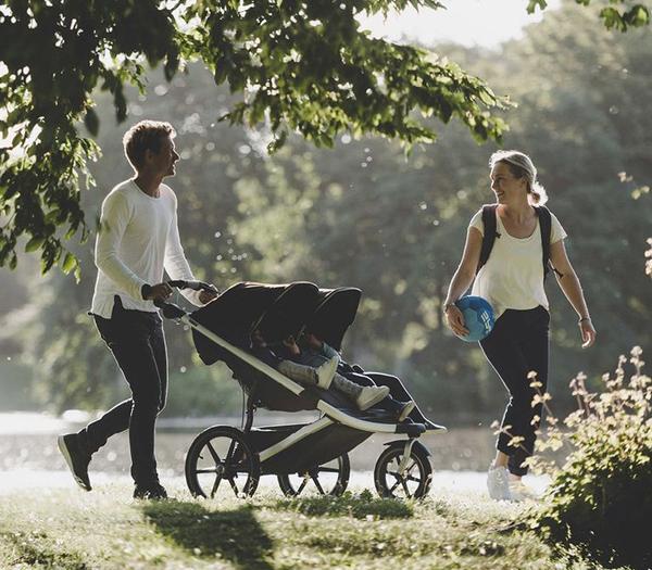 Thule Urban Glide 2 Double je o 1 kg lehčí (15 kg) a o něco lépe se s ním manipuluje díky velkým nafukovacím kolům. Volila bych ho v případě, pokud by procházky v přírodě převládaly nad městem nebo pokud sportuješ. Nevýhodou je nemožnost polohování nohou, které je nutné dokoupit zvlášť. Hlubokou korbu má o trochu prostornější a můžeš ocenit i ruční brzdu či uzavíratelný nákupní košík.