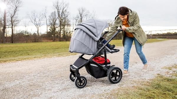 doporučuji Britax Smile III. Má dlouhou stříšku, prostorné obousměrné sezení s polohováním do lehu, včetně opěrky nohou. Oceníš u něj navíc nafukovací kola i dobré odpružení, které mu umožňuje houpání. Samozřejmostí je nastavitelná rukojeť do výšky 113 cm, takže je vhodný i pro vyšší rodiče.