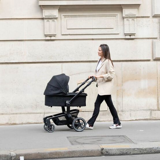 Doporučuji Ti podívat se i na kočárky, které mají zabudovaný ramenní popruh, což usnadňuje jejich přenášení. Jako příklad Ti uvedu populární model Joolz Hub+. Ten je určen pro rodiče, kteří se pohybují převážně po městském terénu. Díky níže položeným nástavbám a nastavitelné rukojeti do výšky 107 cm je vhodný spíše pro nižší rodiče, kteří zároveň ocení i nízkou hmotnost a jednoduchou manipulaci umožňující ovládání jednou rukou. Zaujme také jednoduchým složením s nasazeným sedadlem na konstrukci a integrovaným ramenním popruhem. Po složení není třeba ani hledat místo, kam kočárek opřít. Ve složeném stavu stojí sám, což ušetří místo při uskladnění. Sportovní sezení je obousměrné a lze jej napolohovat do skoro úplně rovného lehu.