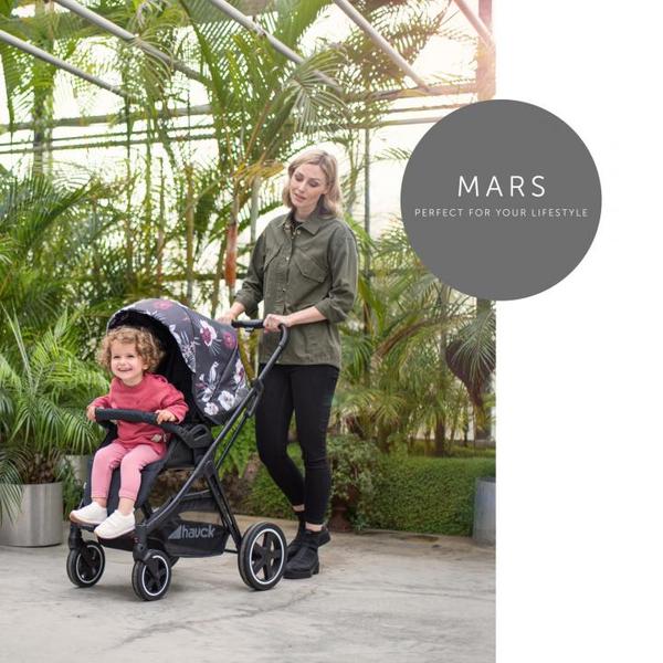 Cenově dostupný model s o něco tvrdším a více městským odpružením je Hauck Mars . Má prostorné 90 cm sedadlo, které unese 25 kg dítě.
