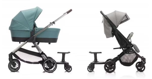 K oběma kočárkům doporučuji skejty či stupátka Zopa Segboard, Lascal Buggy Board, nebo Fillikid Basic (nosnost až 25kg), které mají nastavitelná "ramena" do různých úhlů a délky. Všechny jsou dostupné ve verzi se sedátkem.