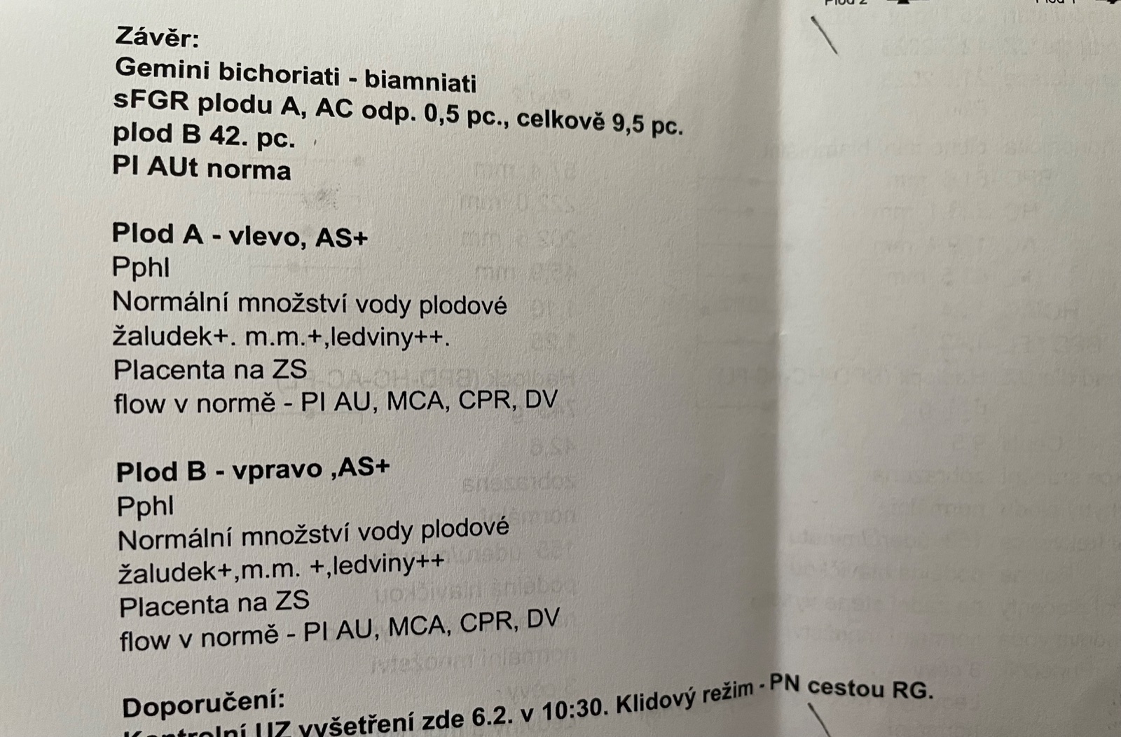 při kontrolním utz ve 25. týdnu bylo zjištěno, že miminko A má malé bříško. Celkově je menší oproti B, ale jinak by mělo být v normě.