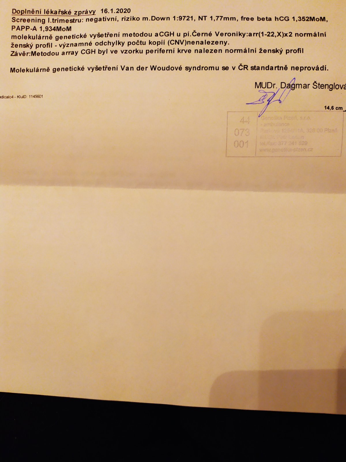 dnes jsem ve schránce objevila dopis z genetiky.