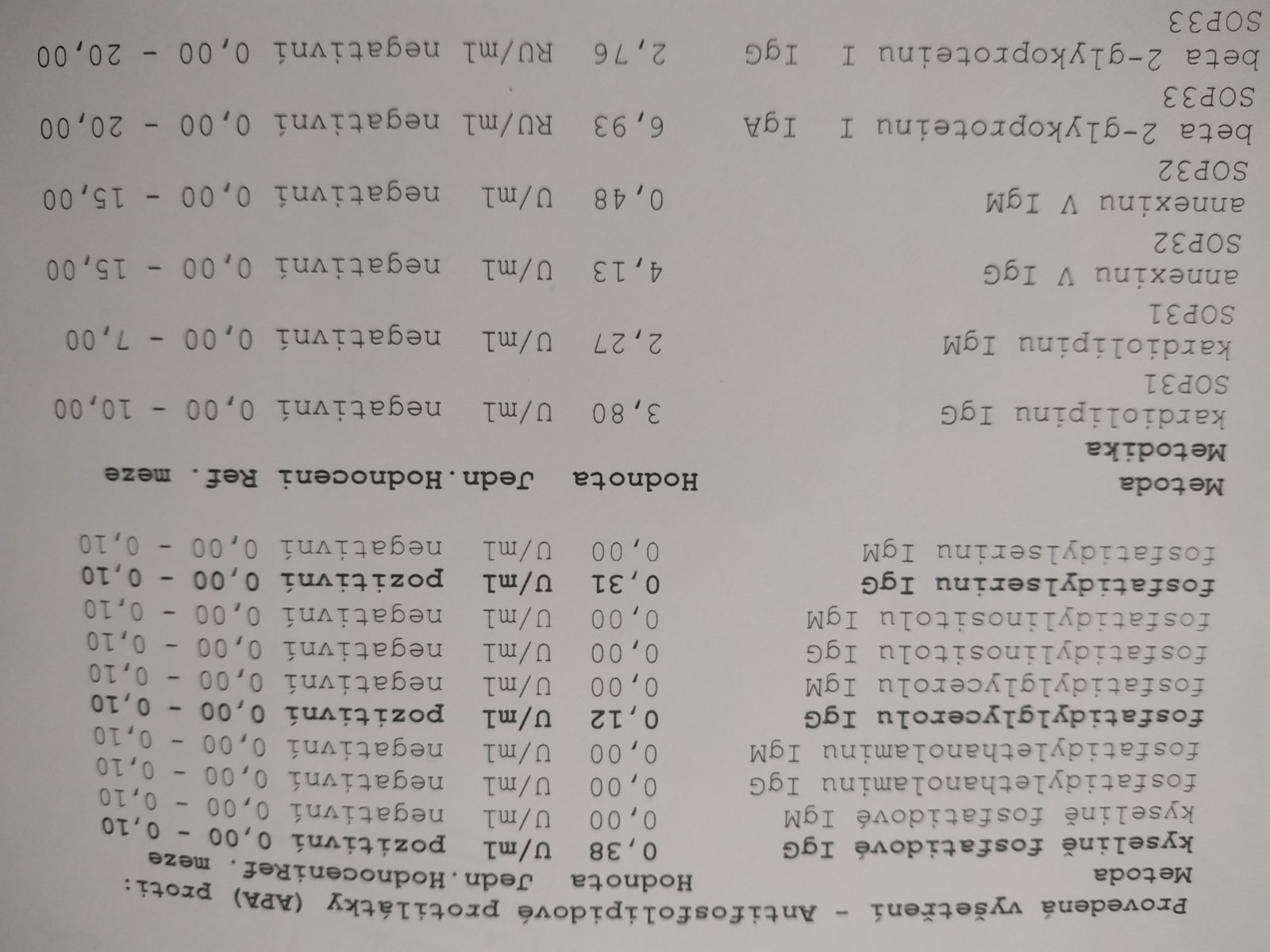 byla mi v centru ivf provedena vyšetření imunologie, kde mi vyšly vysoké hodnoty u třech antifosfolipidových protilátek a ráda bych se Vás zeptala, co to přesně znamená. Jedná se o látky 1. Kyselina fosfatidová, 2. Fosfatidylglyceron a za 3. Fosfatidylserin. Paní doktorka mi ale nebyla schopná vysvětlit, co to přesně znamená, snad jen to, že to může způsobit potrácivost a že by doporučila v příštím ivf nasadit lék Godasal.