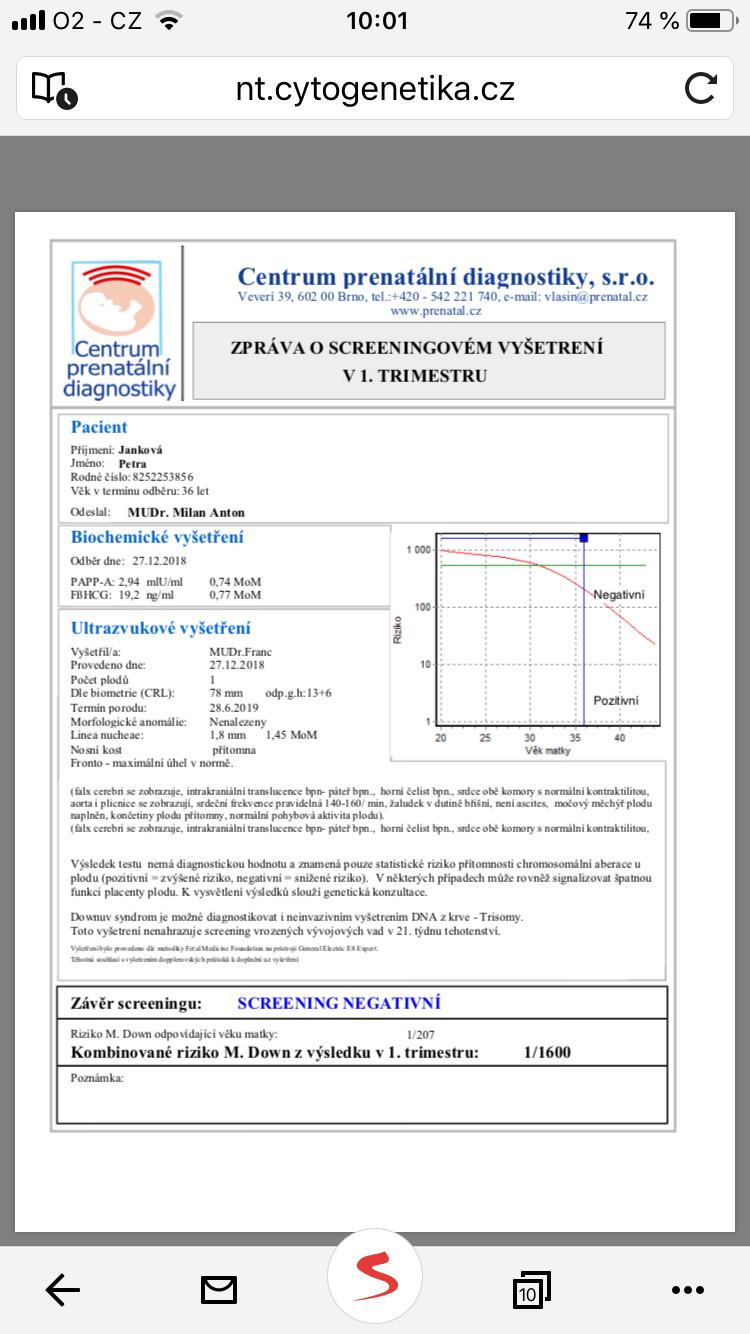 včera jsem byla na prvním screeningu. Podle utz bylo vše tak, jak má být. Pak mi měli volat výsledky krve, ale já ten hovor promeškala a zpět jsem se už nedovolala. Mám jen výsledky na papíře a moc tomu nerozumím a jsem dost netrpělivá než půjdu ke svému doktorovi. Myslíte, že je vše jak má být?