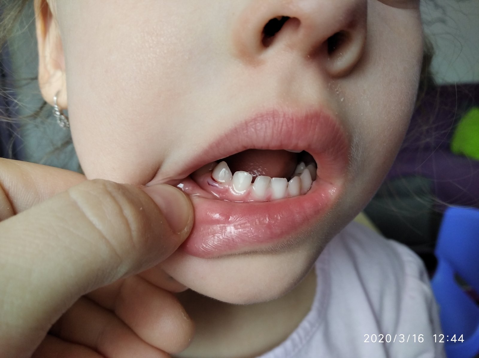 potřebuji pomoct. Dcera dneska nešikovně spadla a bouchla se do zubu. Docela dost to krvácelo, zub se nekýve, ale má tam takovou podlitinu (viz.foto). K našemu zubaři se nemůžu dovolat a kdo ví, zda vůbec ordinuje.