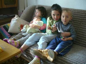 Dne 25.8.2010 se nám v 8:14 hodin narodila plánovaným císařským řezem dceruška Kačenka. Její bráška měl při porodu 4600 g, tak se doktoři báli, že i ona bude obřík a bude mít přes 4 kg, proto zvolili císařský řez. Kačenka nakonec měla "jen" 3950 g a 48 cm, ale i tak jsem byla za císařský řez ráda, protože všechno proběhlo bez komplikací a už čtvrtý den po porodu nás pustili z porodnice. Máme doma už dvouletého chlapečka Ondráška, a tak se nám povedl páreček a velký bráška přivítal do rodiny sestřičku. Letos se nám v rodině narodili čtyři chlapečci, tak se všichni na holčičku moc těšili a užívají si ji.