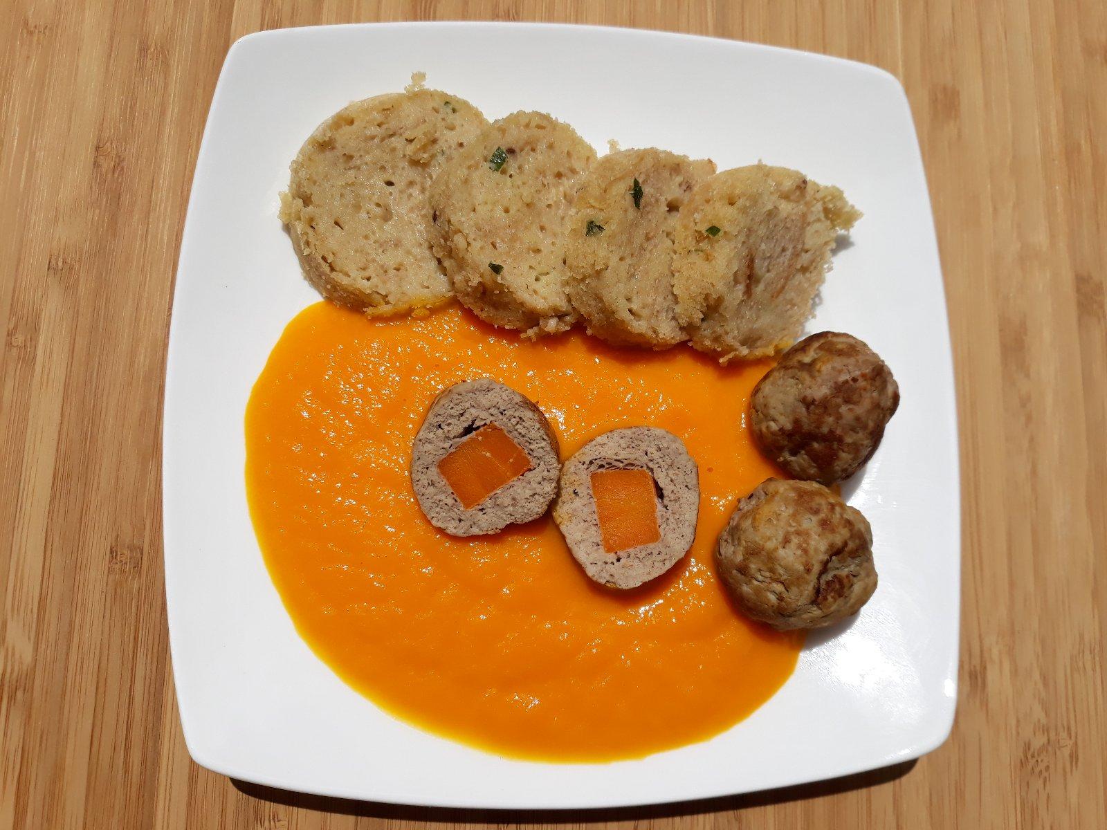 7. Mäsko vyberieme, k horúcej mrkve pridáme kúsok masla a rozmixujeme do hladka