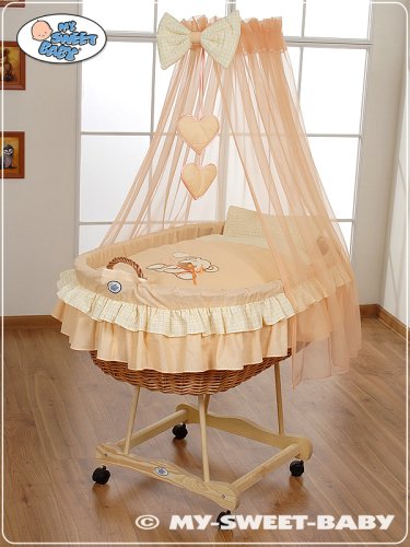 Kolébky jsou k dostání s textilními nebesy s pevnou kostrou.