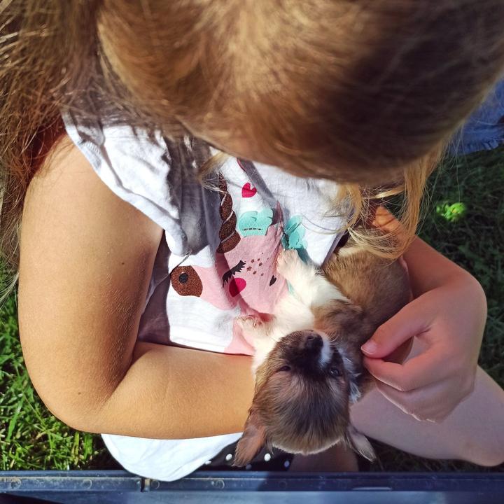 Bydlení na vesnici v kostce. Řeknete sousedovi, že holčičky touží po pejskovi, ten to řekne přes plot dalšímu sousedovi a tak to jde dál a dál, až Vám zavolá neznámá paní z vedlejší vesnice, která je také na rodičovské dovolené a má 5 dlouhosrstých čivavých miminek. 😃😃😃 My jsme první komu volá, vůbec nás nezná, ale z povídání ví, že nám chce dát vybrat jako prvním. No co mám říct? Holky, co dlouhosrsté čivavy? Prý nelínají a jsou zlatíčka? Můžete mi to odsouhlasit? 🤍🤍🤍
