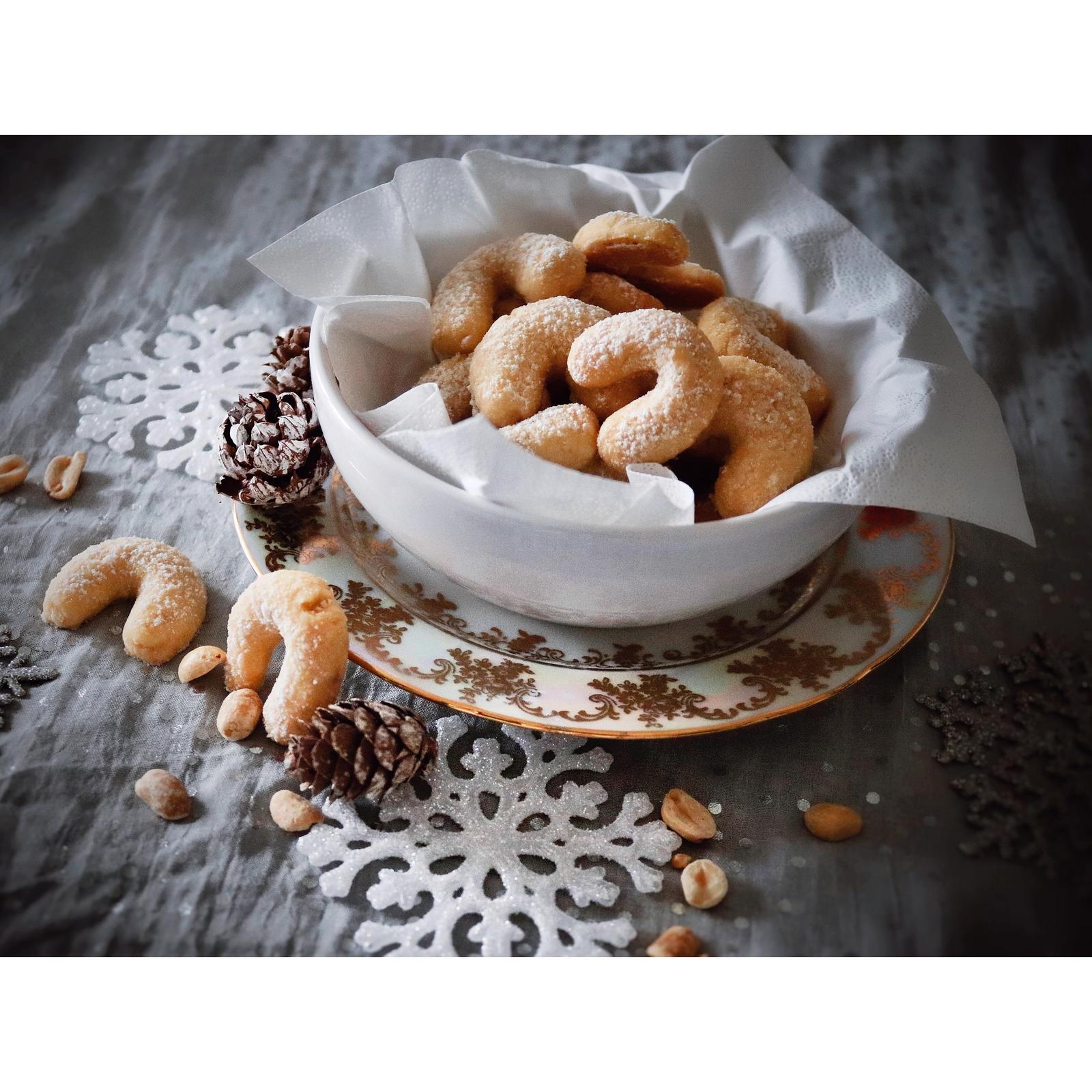 🌿 Aʀᴀšíᴅᴏᴠᴏ - ᴍᴀɴᴅʟᴏᴠé ʀᴏʜʟíčᴋʏ ____________________________________________ 300 g hladké mouky 210 g másla 100 g umletých arašídů a mandlí (50:50) 70 g moučkového cukru 1 žloutek většího vejce ____________________________________________ Pečeme na 170 °C 10-12 minut.