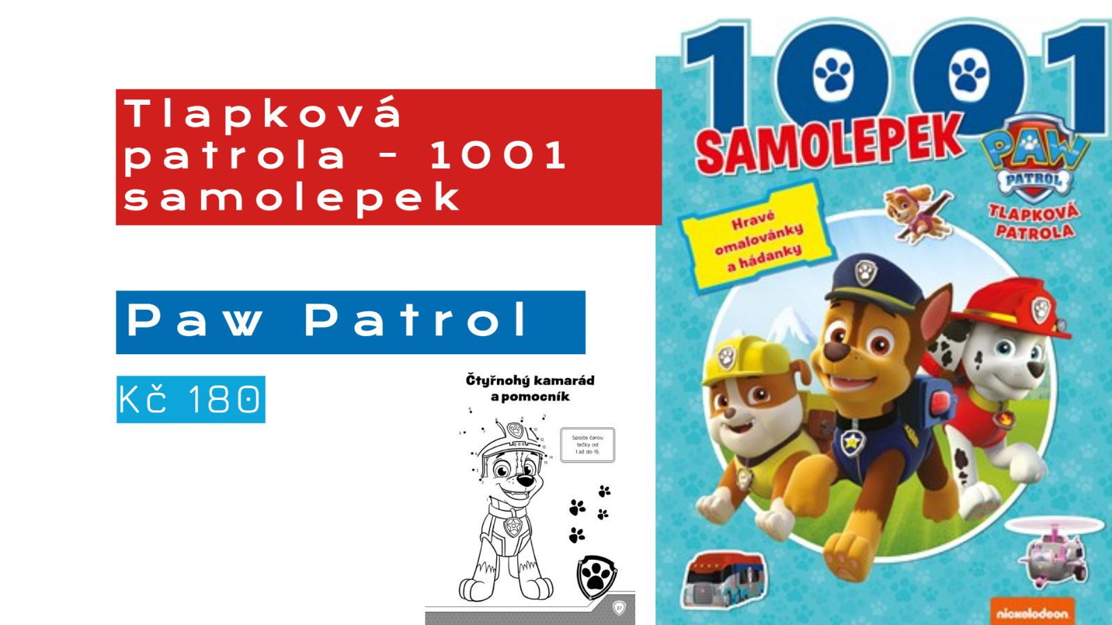 Další zábava čeká s knížkou plnou hádanek, hravých samolepek a omalovánek. Fanoušci Tlapkové patroly se pomocí této hravé knížky mohou se všemi štěňaty vydat na jejich dobrodružství.