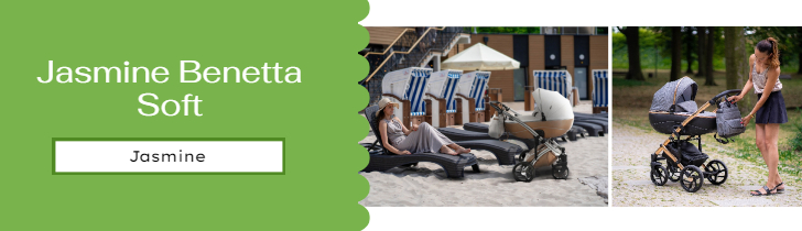 Jasmine Benetta Soft je stylový kombinovaný kočárek se čtyřmi koly, co jsou bezúdržbová, ložisková a gelová, která nepropíchnete a hravě zvládnou i zhoršený terén.