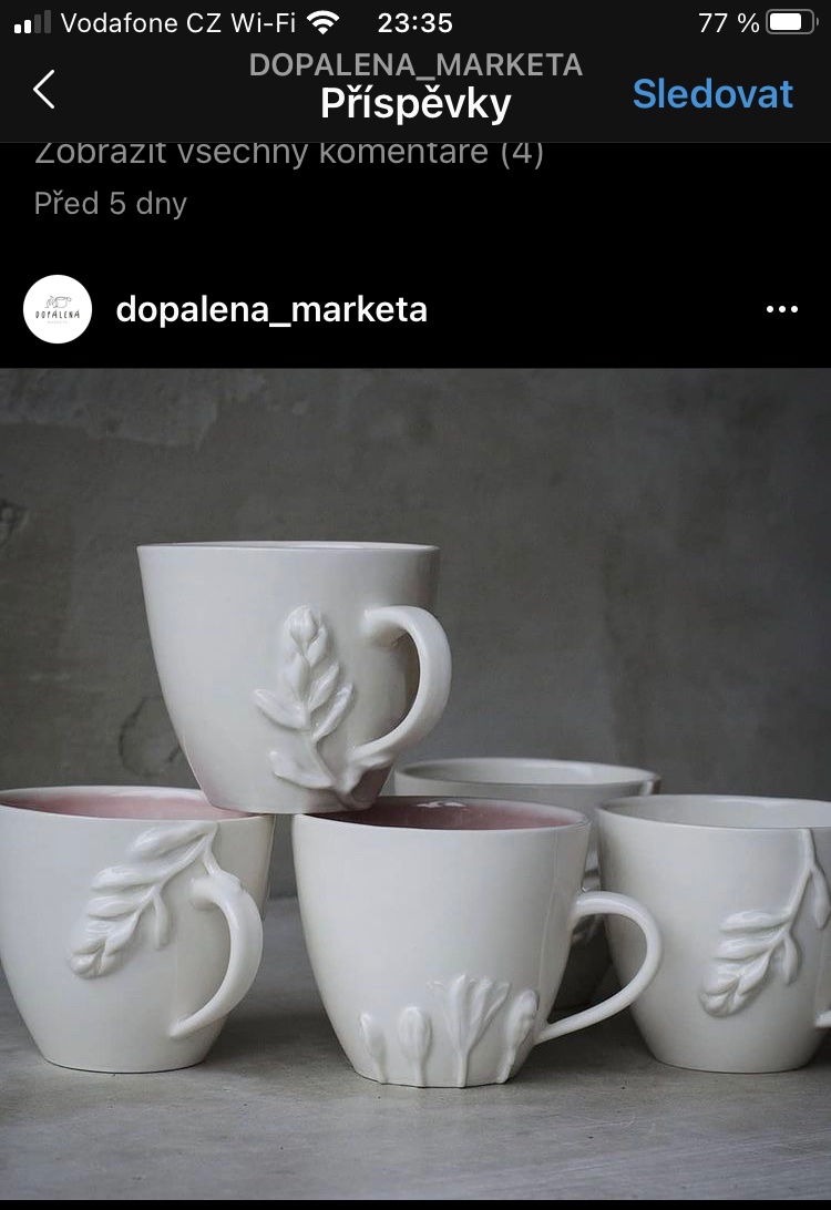 mám moc ráda porcelán od emamamisu, ale na stránkách zrovna žádné hrníčky nemá skladem. Oni prodávají spíše na trhu a na eshop dají jen to, co pak zbude....je to ručně dělaný porcelán, tak každý kus je trochu jiný... No a jinak se snažím udržet u jedné kávy denně a to jsem ji do 30 také nepila