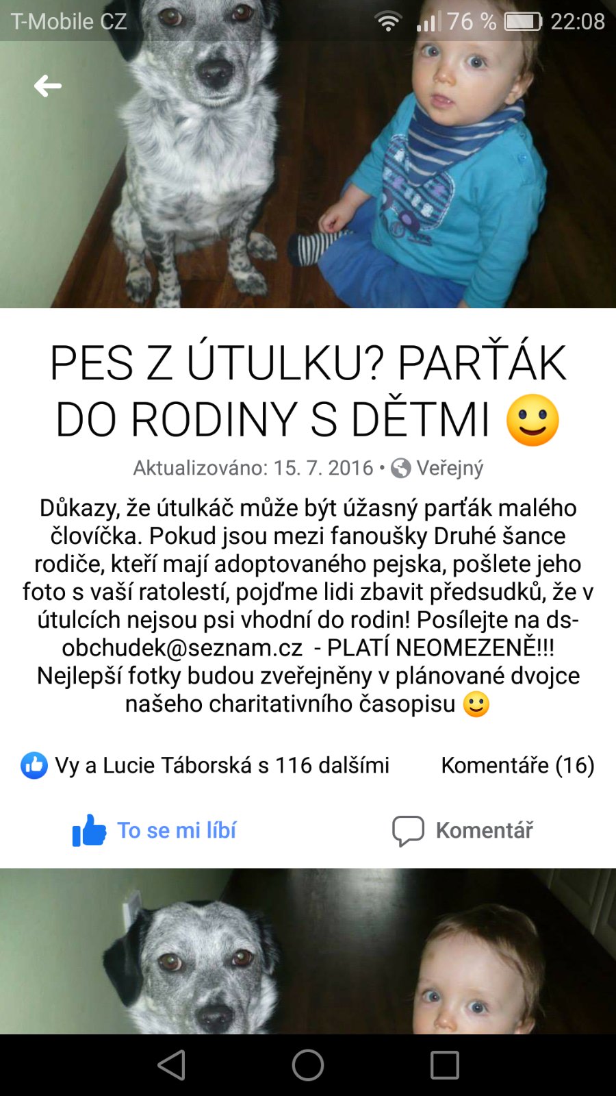 @88petule jedině psa z útulku !! Tam si vyberete přímo na míru jak vzhledem, tak povahou !! Ale musí mít alespoň rok. Pokud bys měla zájem, ráda poradím a zkusim poslat pár odkazů. Za mě jedině heslo NEKUPUJ, ADOPTUJ !! Měla jsem adoptavane už 3 fenky a vím že lepší a vernejsi bych NIKDY nenašla. A ten pocit co mám pri každém pohledu na ně je k nezaplacení. Nikdy v životě dokud bude poslední pes v útulku bych žádného nekoupila....