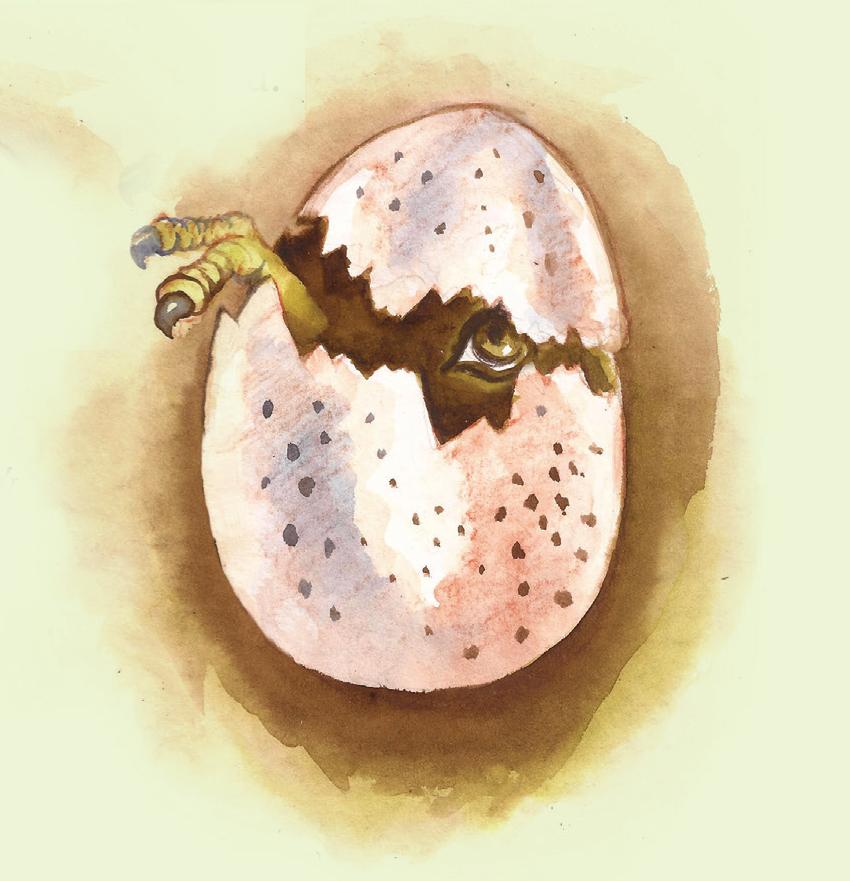 Probudil se až ve chvíli, kdy ho něco pošimralo na nose. Sáhl si na obličej – přímo na nose mu přistál kousek skořápky. Vejce bylo prasklé. Vršek chyběl a ze zbytku skořápky vykukoval malý dráček.