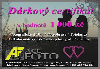 Chcete potěšit své milované? Darujte jim dárkový certifikát Acefoto.cz. Certifikáty lze uplatnit na fotografické služby, fotoobrazy, velkoformátový tisk, fotokurzy a další...