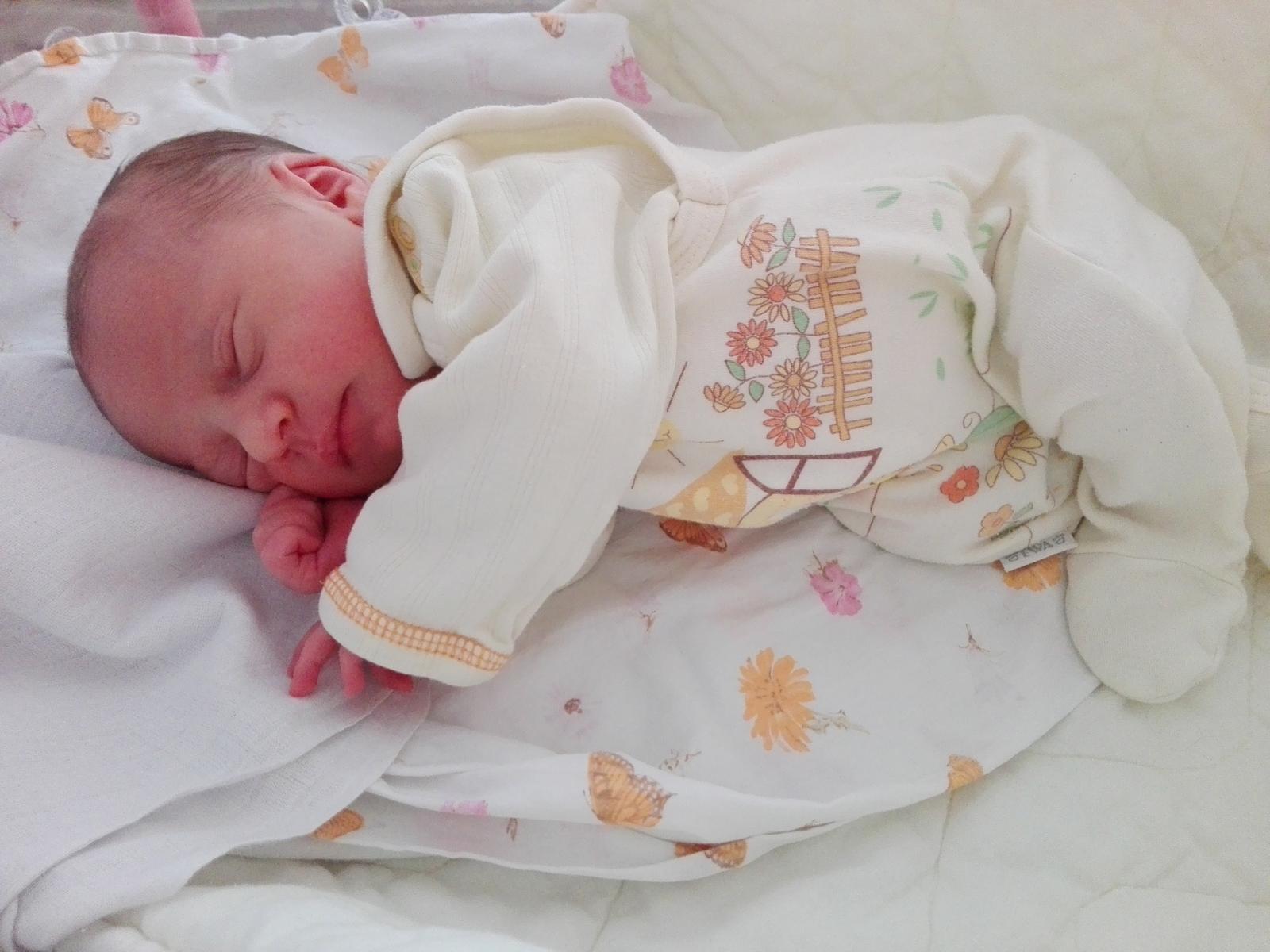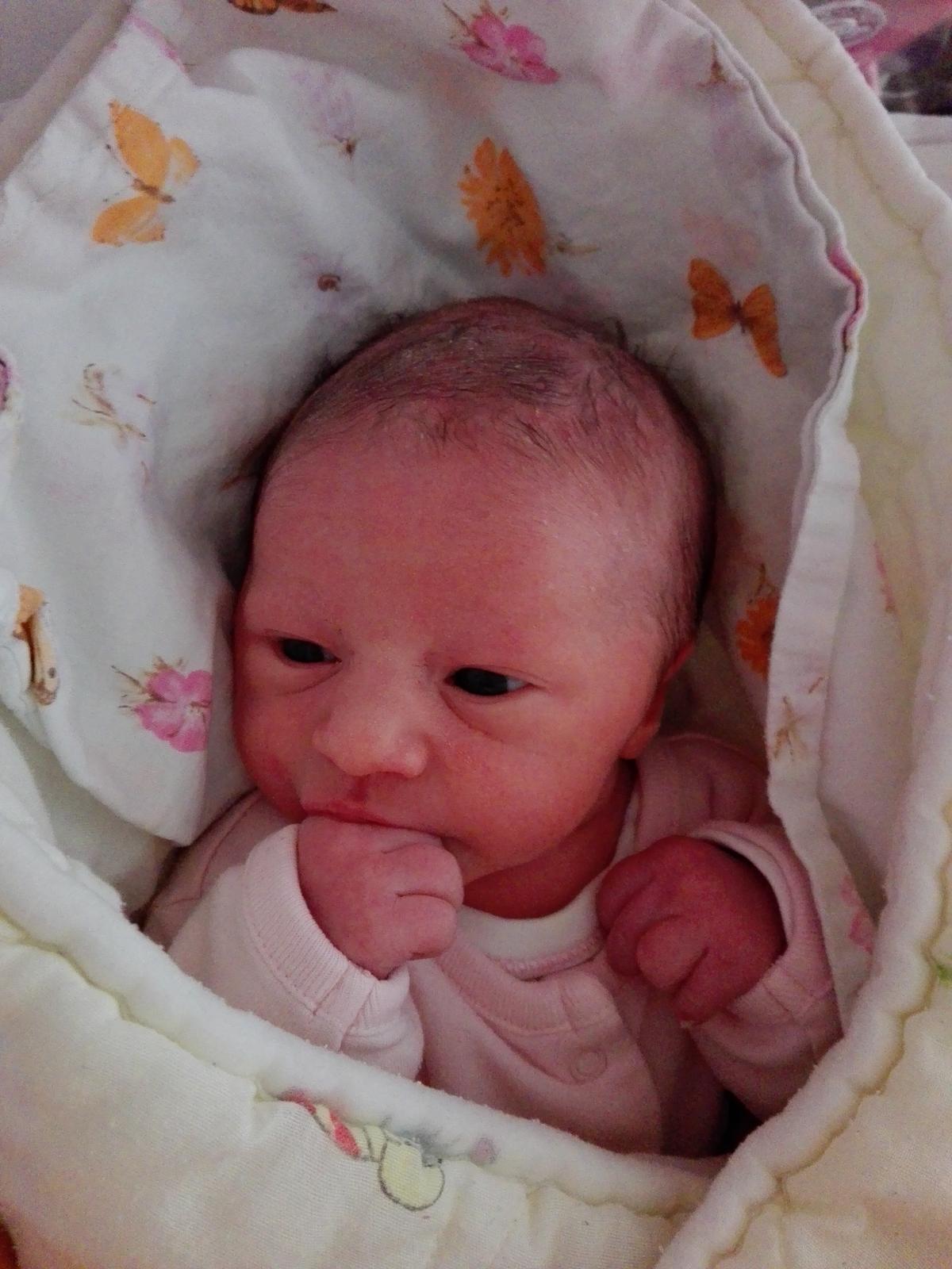 Poprvé to začalo 2.února 2016, kdy jsem ráno vstala s nevolnosti ale nějak sem si řekla že to prejde tak sem vypravila a v klidu odešla do prace, tam jsem se převlékla a šla pracovat jelikož sem pracovala ve stoje tak to tomu moc nepřidalo zhoršovalo se to zacla se mi motta hlava , špatně od žaludku a najednou pocit ze budu zvracet tak sem běžela na záchod, umyla a sla zpet a za 10 minut znovu uz sem ani nedosla zhroutila sem se k zemi cela bílá přišla mistrova ze ať jdu radši k lékaři, tak sem se oblékla a šla sem ta nic nezjistila tak v klidu a večer sem znovu zvracela tak si říkám ze uz je to divné, tak sem šla spat a hned rano skočila do lékárny pro test. Tak a přišla chvile pravdy drzela sem v ruce tyčinky a čekala , bylo to nekonečné a po ubehlych minutach a ejhle, ty dvě čárky tam byly v tu chvíli sem se rozbrecela smíšené pocity nevěděla sem co delat tak volam me nejlepší kamaradce tak hned přišla a že zajde semnou k doktorce🙂 tak sme dorazili , sla sem do ordinace a rikam ji to, tak ze mi udela utz a vysetreni tak tam tak lezim, ona se diva na tu obrazovku a dlouho nic nerika az nejednou, tak ano jste těhotná gratuluji ste v 7 tt :-O , dívala sem se na ni s otevrenou pusou, tak mi vypsala papiry a dala tehotenskou prukazku. Tak sem to sdelila manželovi ten byl štěstím bez sebe ! A tak to začalo, prvni dva měsíce bylo vse v pořádku, pote se zacli objevovat potíže s dýcháním, otoky, šíleně bolestive křeče do nohou na ktere ani magnesium nepomahalo a. do toho se mi pprad vracel zanet tam dole, takze co tyden to sem byla u doktorky bala sem se aby se to nedostalo k miminku ale bylo mi receno ze by nemelo. Jelikož se lecim se štitnou žlázou tak sem musela jit ve 13 tt na screening kvůli vrozenym vadam, naštěstí vse vyslo v pořádku, poté sem musela jeste na genetiku tam vyšlo take vse v pořádku, uf spadl mi kamen ze srdce, asi po pulce zacaly silene bolesti do zad, břicha a tvrdnuti tak me doktorka pripojila na monitor a tam se ukazaly slabe kontrakce byla sem 36+3tt, tak me pro jistotu poslala do nemocnice do těhotenske poradny, tak za tyden sem tam jela udelala mi vysetreni,utz a rekli ze tam budu muset zustat, tak sem lezela tyden v nemocnici nic se nezmenilo porad bolesti zad, akorat do me cpali prasky a nic nezabiralo tak po domluve s primarem me propustily, dva tydny na to sem musela na kontrolu tam chtela rani moč ale ja zapomela tak me poslala s kaliskem na zachod tak sem se svlekla sedla si a ted se chci zvednou najednou bolest a uz sem se nezvedla takze shrbena sem se slzama v ocich vysla a sestricka coco stalo rikam ze nevim ze najednou tohle a strasne to boli tak ze me vysetri to bolelo jeste vic , tak ze me domu uz pustit nemuzou takze sem tam skoncila znova na kapacce, ubehl tyden bolesti ustaly a jaco stale v nemocnici uz uplne hotova z toho nic mi neni, nic nevim , hrůza... druhy tyden to byla streda tak doktor prisel a rika ze po poslednim utz mela mala vahovy odhad 2,500g a po druhym taky ze za tyden ma stejne ze nepribira ze se musi domluvit s primarkou o vyvolani, ouu asi je neco špatně :( vydesena volam.manželovi ten me uklidnoval, ze vse bude v pořádku ze se nemam bat, ze hned jak pude z práce prijede 🙂 tak odpoledne prijel a zrovna přišel doktor a rika, tak zitra v 9:00 nastup na vysetrovnu nanebo vyvolani, uff uleva a zaroven strach. Večer tedy s obavami sem si slařekla lehnout... Ráno v 7:00 budicek, snidane to sem snedla jen loupak, a prisla 9 hodina prisla sestra a slo jsme tak semsem vylezla na lehatko a. doktor ze ted to bude nepříjemné a zavedl mi tabletu, silena bolest hruza, a rika tak a ted cekat az zabere nekomu zabere za hodinu , za dve nekomu za den tak kdyztak prijdte. Dobře, taktak jdu zpatky na pokoj, v klidu si zabalim veci a leham si na pokoj ubehla pul hodina a citim bolesti a tvrdnuti bricha , coto!? :-O tak se zvedam a. zhorsuje se to , ubehlo 10 minut a větší bolesti a nucenico prodychavat, v tu chvili prichazi sestra ,kouka na meinternetu a usmiva se arika tak uz? tak udelame monitor., tak me napojilapro, slabe kontrakce a, postupne se zvysuji, tak vola na sal jestli me muze přivést, ANO! tak beru tašku a v klidu si jdu o patro níže na sal, co krok to sem se musela zastavit a dychat, šílené bolesti, sešli sme dolu , tam už ceka sestricka ze sálu, tak me zavedli na predporodni pokoj, dalsi monitor, pote vysetreni na kolik sem otevrena byla sem na 3cm , tak du do sprchy, sedim, stojim, nic nepomaha, tak sse ptam sestry jestli muzu zavolat manžela, ano zavolejte, tak mu volam a ze hned prijede! uff byla sem radana nebudu tu sama :( po pul hodine prijel, chudák nevedel co ma delat, jak mi pomoct tak me hladil a drzelco za ruku a rikal ze sem statecna a ze to zvládnu! Přišel primář ze mi pichnou plodovou vodu, uleva pocitt jako kdyz curam, pote mi udelala sestra klisstyr, takze stridacka zachod,sprcha,postel, a bolesti horsi a horsi bylo pul 12, tak dalsi vysetreni a otevrena na 6cm doktor uz nestihl pichnoutani epidural, taktak sestra me napojila zase na monitor a ze abych si lehla na postel na bok cože???! jako fakt?! tak mi tedy pomahaji sotva sem tam vylezla, silena bolest a pocituz ze me nutil tlačit tak pribehla sestra a vola na doktora, uz je to tadydivné, deme na to ! Tak manzel a sestra me vzaly kazdej z jedne strany a tahly na sal, ja nemela vubec sílu podlamovali se mi nohy, takze me tahnou zamnou kapičky krve, na sale me vysazujou na lehátko, a doktor rika co mam delat a az rekne tak zatlacit, jedno, druhy treti a hlavička venku tak jeste raminka, tak naposledy hodne zatlačim a uz slyším plac, jdou ho umejtna, ted jen placenta a siti to uz sem necitila vnimala sem uzjen meho pysneho a. uzasneho manzelaa s nelinkou v náručí, byl to ten nejkrásnější pocit na světě, narodila se 1.září 2016, čtvrtek ve 12:53hodin , 2,470g a 47cm docela malinkatá ale nadherna, dnes už ji sou