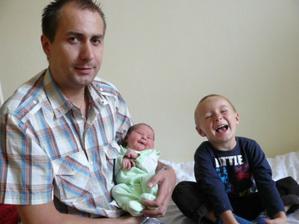 Porod byl vyvolaný v 11,45hod a malá byla na světě přesně v 15,45hod. Tatík u porodu asistoval a podporoval nás.