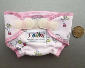 Kalhotková Aitu Nappi Doll pro panenky, repektive pro všechny malé maminky. Plenka má gumičky kolem nožiček a zapínání na suchý zip. Jde o věrnou zmenšeninu klasické kalhotkové plenky. Můžete do ní své dceři sami vyrobit vkládačku z kousku fleece nebo froté bavlny.