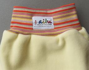 Od běžných svrchních kalhotek, které jsou celé ušité z materiálu s PUL zátěrem, se svrchní kalhotky Aitu Fleece & PUL liší tím, že jsou celkově výrazně prodyšnější, ale současně všitý pás textilie s PUL zátěrem zvyšuje ochranu před nechtěným prosáknutím.