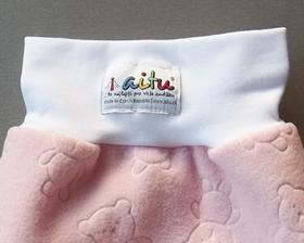 Aitu Cover Fleece & PUL jsou koncipované jako navlékací svrchní kalhotky. Jde o speciální sérii, která se od běžných kalhotek Aitu Fleece liší tím, že mají uvnitř všitý klín (pás) z polyesteru s polyuretanovým zátěrem (tzv. PUL zátěr), který spolehlivě brání prosáknutí tekutin do vlastních kalhotek. Kalhotky mají kolem pasu široký pružný lem, který děti netlačí na bříšku a přitom dobře drží kalhotky na tělíčku. Pružný lem je i kolem otvorů pro nožičky.