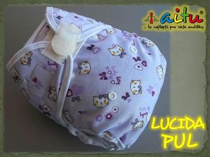 Svrchní kalhotky Aitu Cover Lucida jsou koncipované jako rozepínací se suchým zipem. Velikost je univerzální, nastavitelná pomocí druků. Vnější vrstva kalhotek je tvořena bavlnou, jejíž funkce je čistě estetická.