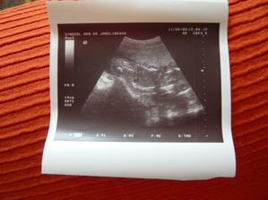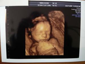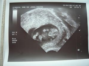 Tak se na nás snad už štěstí konečně usmálo a na IVF už nepůjdeme....... Měli jsme těsně před stimulkou na 2.IVF a čekali na mrchu. Místo toho jsme 15.3.2009 objevili naše krásné //. 17.03.2009 bylo na UTZ vidět plodové vejce, cca 2,7mm, další kontrola 31.3.2009. Tam už byl vidět náš bobeček, 6,3mm veliký a srdíčko mu bilo jako o závod. Dostali jsme krásné fotečky a jsme moc šťastní. Tak konečně je 23.4.2009 a jsme i s taťkou na dalším UTZ, jsme 9+6. Paní doktorka z nás měla velkou radost, říkala, že tak mrskající se miminko už dlouho neviděla. Velikostí odpovídáme úplně na den, máme už těhu průkajdu a dneska jsem se objednala na časný genet. skr. k MUDr. Břešťákovi. Termín porodu je 20.11.2009 a manža má narozky 24.11. 2009. No a já je mám zítra, takže super dnešní dárek. Tak dneska 11.5. 2009 jsem byla u zubaře pro razítko do těhu průkajdy a už ho mám. Další den 12.5.2009 jsme byli u mé praktické paní doktorky, natočila mi EKG a dala nám razítko do těhu průkajdy. Dneska 14.5.2009 jsme byli s manžílkem na genetickém screeningu. Pan doktor a sestřička byli moc hodní. Sestřička mi nabrala krev, vůbec jsem nezaznamenala, že je po odběru, je moc šikovná. Výsledky budou do 14-ti dnů. Pan doktor nám ukázal miminko v celé své kráse, jsme obříci, máme skoro 8 cm, NT 1,8 mm. Dle pana doktora jsme o 6 dnů větší a odpovídáme 13+5 (dle MS 12+6), tak nám upravil termín porodu na 14.11.2009. Slyšeli jsme tlukot srdíčka a bylo to nádherné, 160 úderů /min.. Pan doktor nám dal fotečky na CD, tak jsme moc šťastní. Jelikož nám pan doktor posunul termín porodu o týden dříve, tak jsme se byli 19.05.2009 zaregistrovat k porodu do FN Motol. Dneska 21.05.2009 jsme byli na kontrole a dostali jsme fotečky obličejíčka našeho mimíska. Je to celý tatínek. Mimísek na nás koukal a pěkně skotačil, paní doktorka nám ukázala jak má právě nožičku u hlavičky. Na den dětí 01.06.2009 jsme se dozvěděli, že výsledky screeningu jsou v pořádku. Jsme moc rádi. Dne 04.06.2009 jsem si volala na výsledky krevních triple testů a sestřička mi sdělila, že jsou v pořádku. Jsme s taťkou moc šťastní. Tak dneska 11.06.2009 jsme byli na kontrole u naší paní doktorky a s taťkou jsme byli zvědaví, jestli se nám už ukáže holčička nebo chlapeček. Paní doktorka se moc snažila, říkala, že by to viděla na holčičku, ale že opravdu spíše tipuje, protože miminko nechtělo roztáhnout nožičky. Tak uvidíme, jestli nám to řekne pan doktor na velkém UTZ, kam se objednáme. Bylo vidět, jak si miminko podpírá ručičkou bradičku a paní doktroka nám udělala nějaké fotečky. Jsme s tatínkem moc rádi, že se má miminko fajn. Dneska končíme 4. měsíc. Po měsíci -7.7.2009 jsme konečně zase viděli naše miminko. Paní doktorka nám ukázala močový měchýř, srdíčko, žaludek. Miminko se mrskalo, dokonce nám zamávalo. Paní doktorka nám řekla, že na 90% čekáme holčičku!
