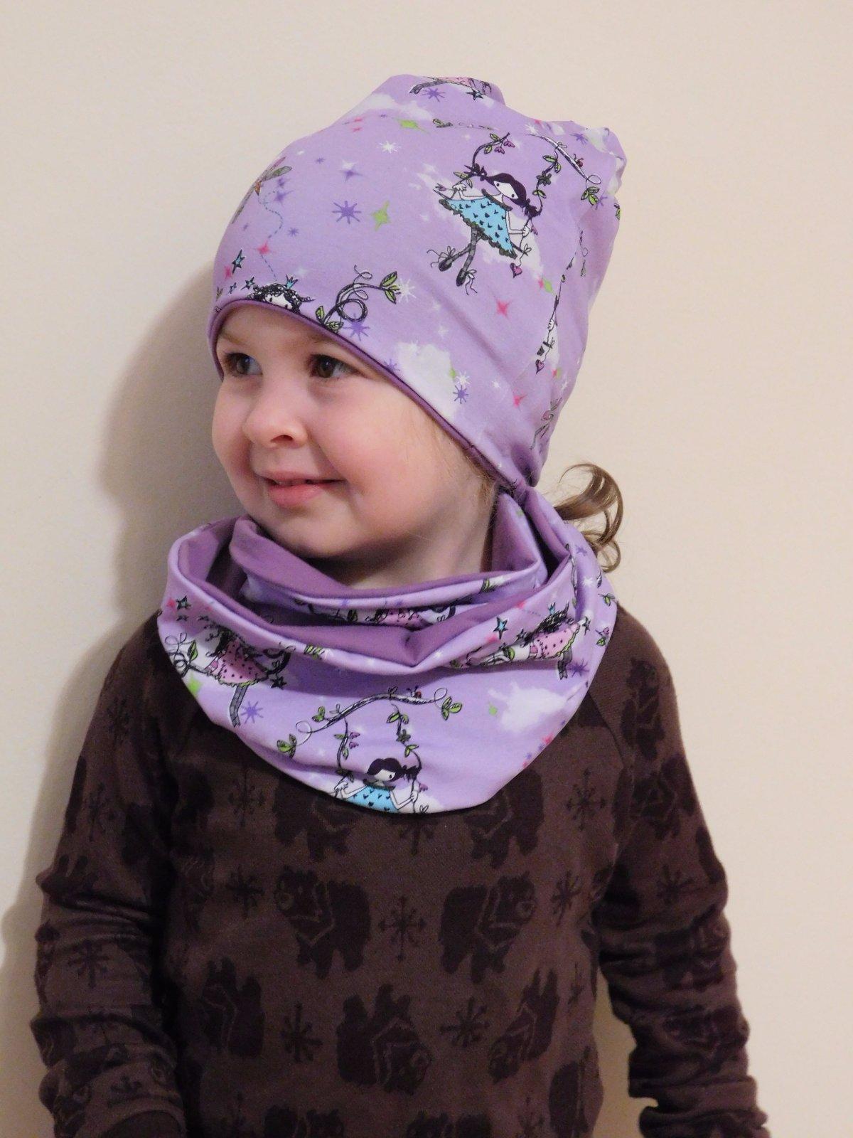 Dievčenský obojstranný setík jarný šmolko čiapky a nákrčníka