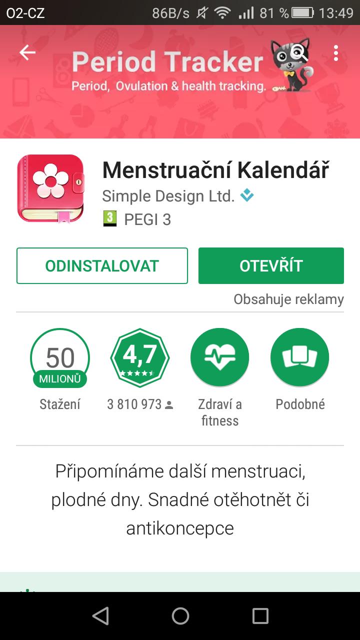 Ja mam Menstruacni kalendar od Simple design a jsem spokojena🙂 cestina tam je.
