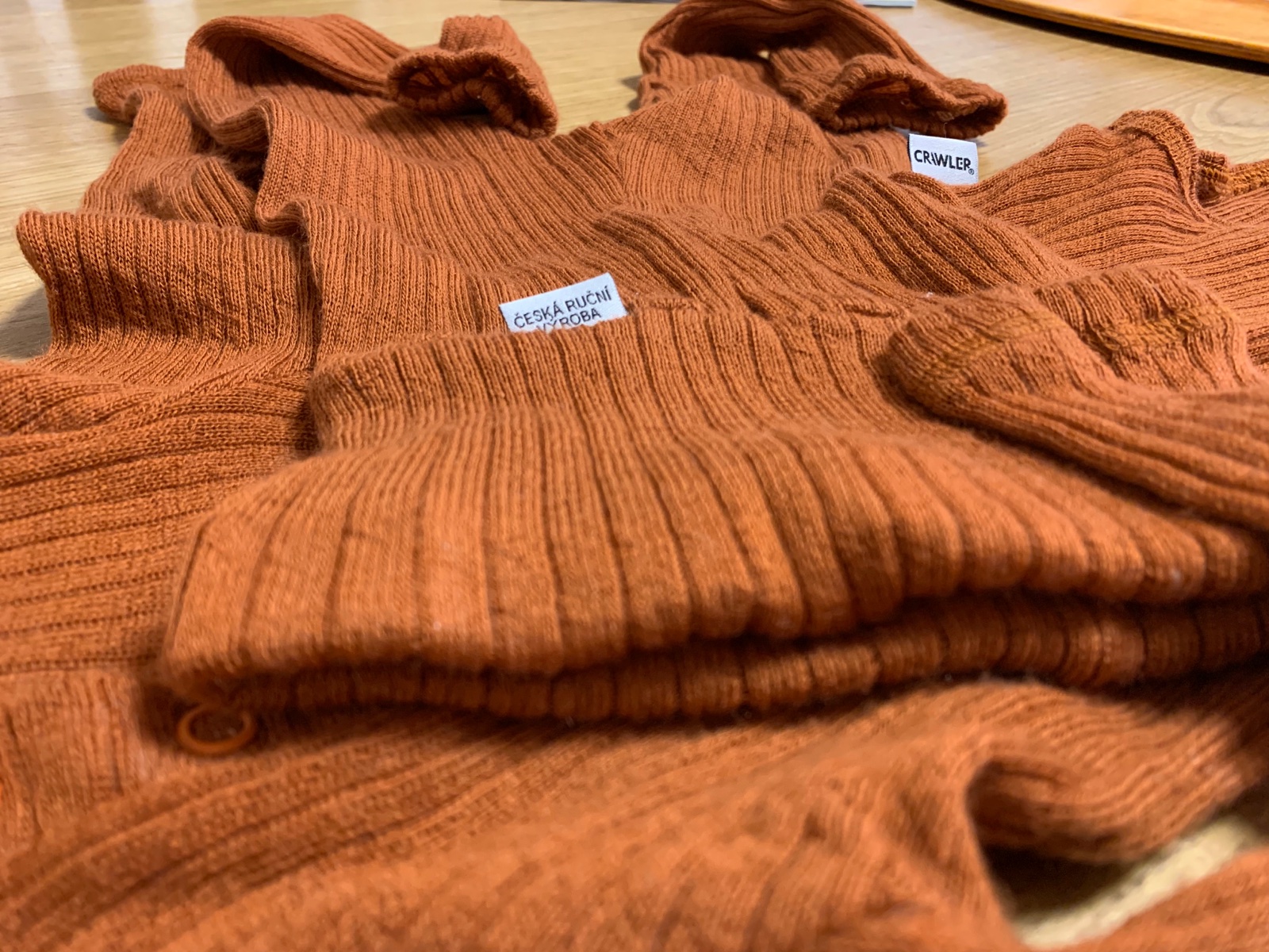I bez praní je merino vlna úžasně měkký materiál, takže jsem hned zalitovala, že netestuju já. První cesta vedla do pračky s lanolinovým přípravkem na krátký program, poté na sušák. Žebrovaný úplet je na omak o dost jemnější a tenčí než klasická hladká úprava, gramáž je o nějakých 20 g na metr čtvereční nižší. Tedy rychleji schne. Ale za mě je kvůli tomu tvarově méně stabilní, takže to chce při sušení opravdu důsledně srovnat. Jinak pak oblékáte špatně naditou jitrnici, u které nejde rozeznat rukáv od těla. Na těle si však tvar zachovává dokonale, jen zkrátka v tom šufleti je divná hrouda.