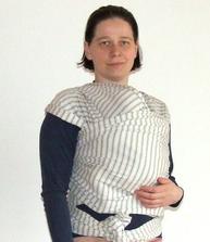 100%bavlna - pružný a elastický, skvěle se s ním uvazují kolébky pro novorozence. Nemusíte nijak zvláště znát úvazy dopodrobna, tento šátek váže sám, nikde nic neodstává, miminko se v šátku cítí skvěle.