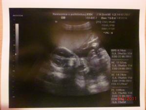 8.12.2010 jsem byla na utz ve 12.tt,všechno je v tom nejlepším pořádku,jen si miminko pěkně spinkalo 😀 Tak se ho doktorka pokoušela budit,aby viděla obě nožičky,miminko se leklo,obě nožky natáhlo a hned zas spalo,ale na prohlédnutí nožek to stačilo 😀 Byl to krásný pocit vidět naše druhé zlatíčko.. Na další utz jdeme 4.2.2011