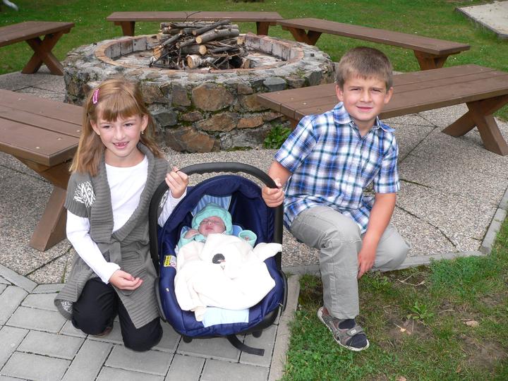 Tak už máme 4.měsíce. Vážíme 6.900g a měříme 62cm. Takže jsme za měsíc přibraly 755g a narosly o 3 cm. A začínáme s příkrmama. Jo a když dostala dnešní dávku injekcí tak u první plakala a u druhé se už smála. Je to naše sluníčko.