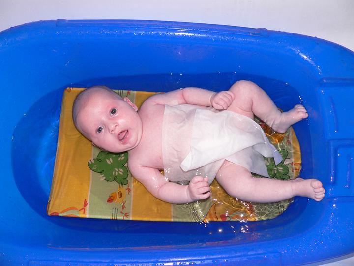 Tak nám jsou dneska tři měsíce. Vážíme 6145g a měříme 59cm: Krásně zvedáme hlavičku a snažíme se přetočit na bok. Ale nejspokojenější jsme když vidíme plnou flašku papáníčka.