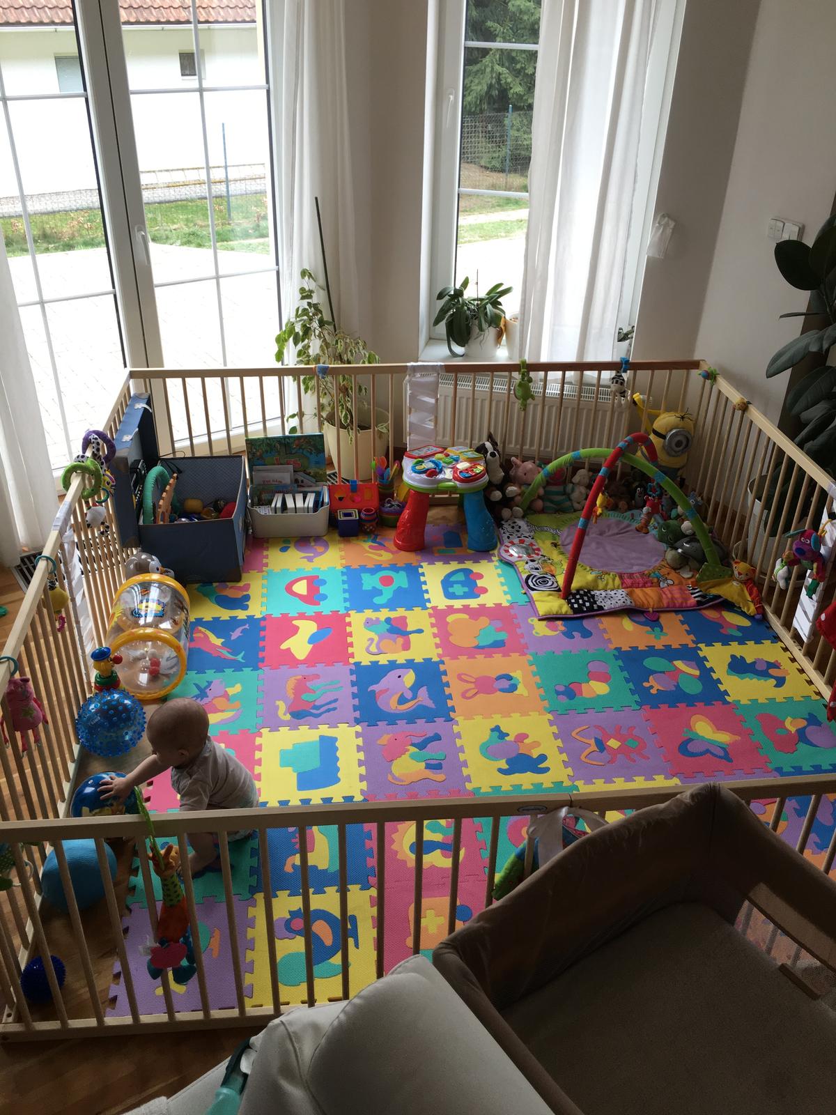 Tak jsem mu vydesinfikovala kostku po kostce v ohradce, přerovnala jsem mu hračky a jinak vse uspořádala, aby mohl průzkumničit a hledat, kde co má 🙂 tak jsem zvědavá jak dlouho to vydrží srovnané a jak dlouho mu bude trvat, než zase zjisti, kde co má 🙂