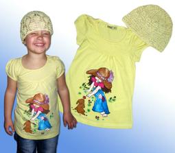 Ukázka souprav - malované tričko + háčkovaná čepička